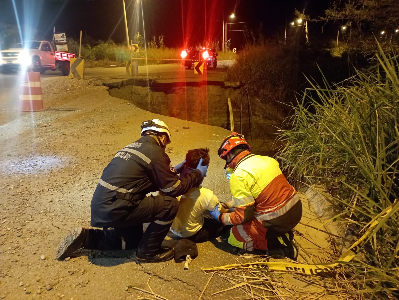 Personal de Bomberos Santa Isabel acudió a un accidente de tránsito ( motocicleta) en el punto atendieron a paciente masculino de 36 años de edad que sufre perdida de pista cayendo en un socavon en la vía Giron-Pasaje.
