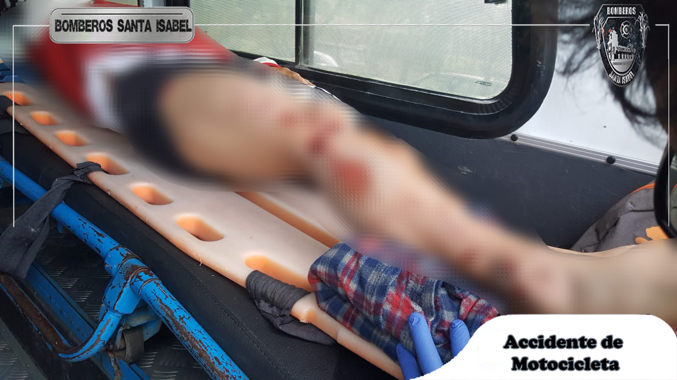 En la vía a la Atalaya personal paramédico de Bomberos Santa Isabel atendió a masculino de aproximadamente 33 años de edad que perdió pista y fue victima de accidente de motocicleta, se brinda ayuda en el punto y es trasladado a una casa de salud para exámenes complementarios