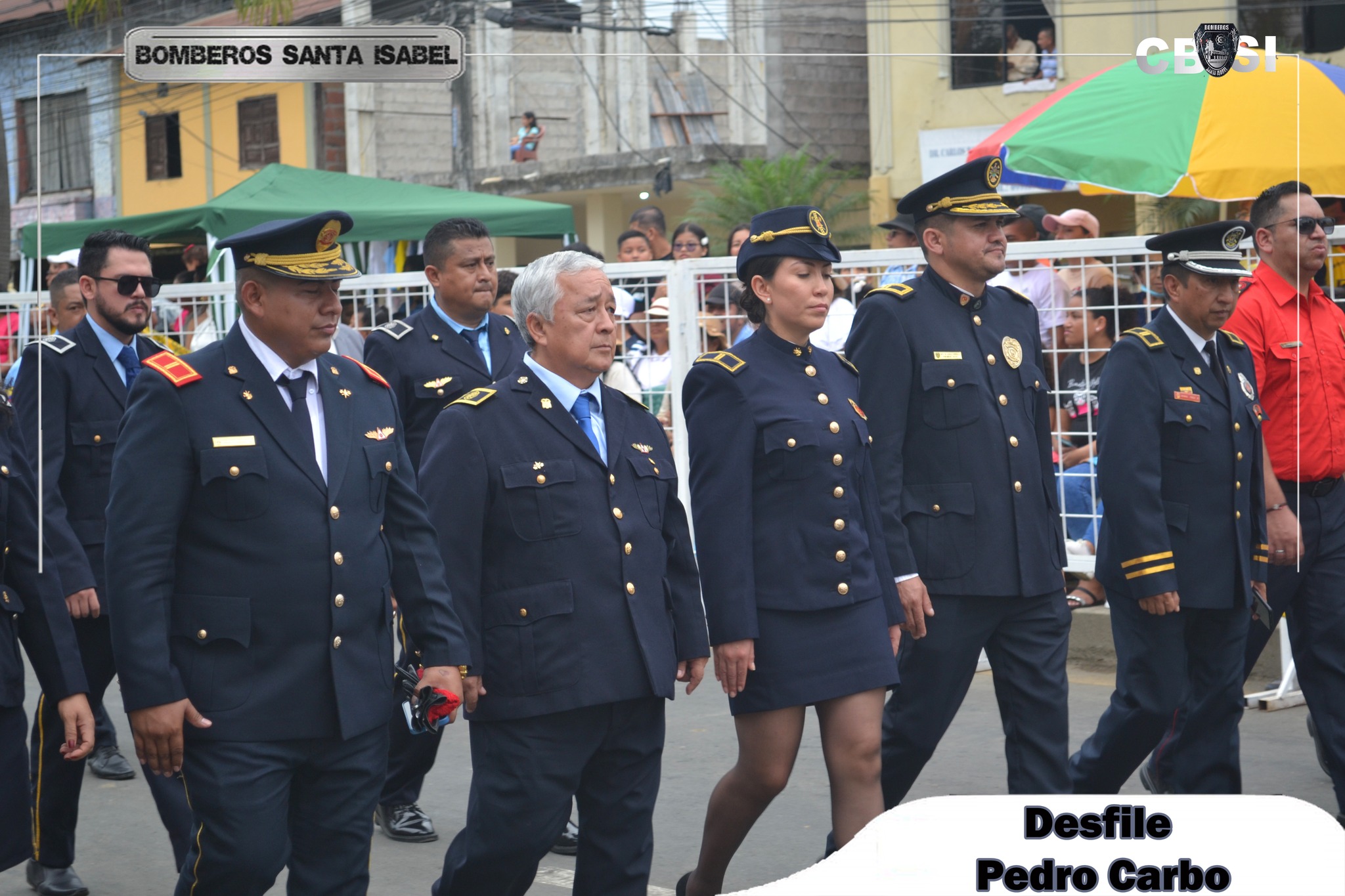 Gracias a la invitación del TCRNL. (B) JUNIOR MORAN MERCHAN Jefe del Cuerpo de Bomberos de Pedro Carbo, el Myr. Jorge Eduardo Torres Arce participó del desfile Cívico, Institucional y Militar al celebrar sus XXXIX Aniversario de Cantonización.