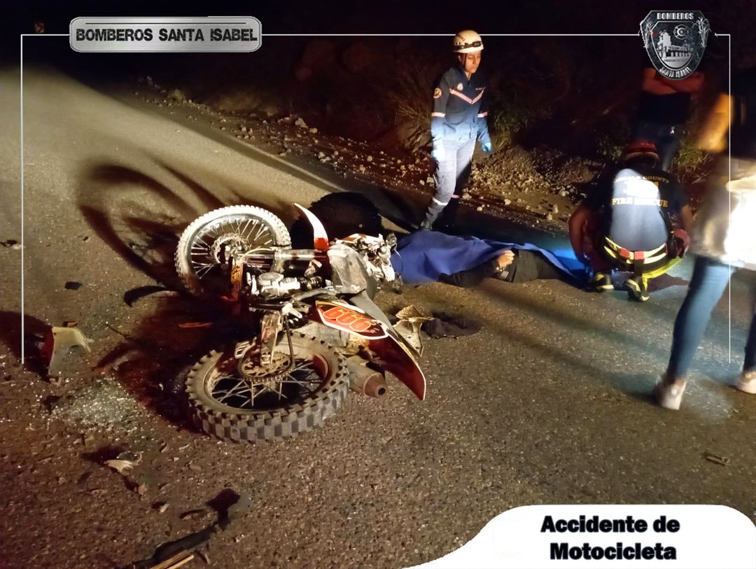 En la vía Girón-Pasaje a la altura del hotel Las Peñas se produjo un accidente de tránsito, una motocicleta es impactada por un vehículo pesado, en el punto paramédicos de Bomberos Santa Isabel verificaron que el conductor de la moto se encontraba sin signos vitales.