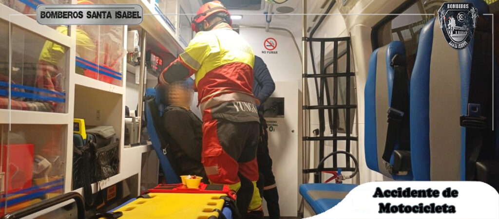 En el Ramal Viejo, personal paramédico de Bomberos Santa Isabel atendió a paciente masculino con aliento similar al alcohol que sufrió un accidente de motocicleta (sin casco) al examen físico presentó múltiples laceraciones y corte, se brindó ayuda en el lugar y se dejó recomendaciones.
